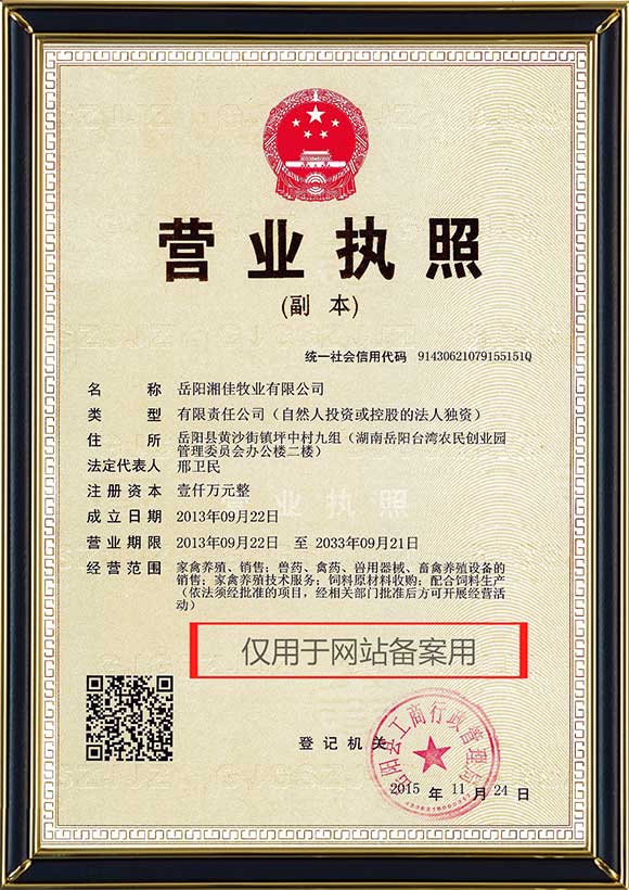 岳陽湘佳牧業(yè)有限公司是一家“公司+農(nóng)戶+基地”的家禽養(yǎng)殖企業(yè),具有飼料加工、商品雞飼養(yǎng)、銷售、技術(shù)服務(wù)為一體的一條龍產(chǎn)業(yè)鏈功能,是岳陽市的大型家禽養(yǎng)殖企業(yè)之一。